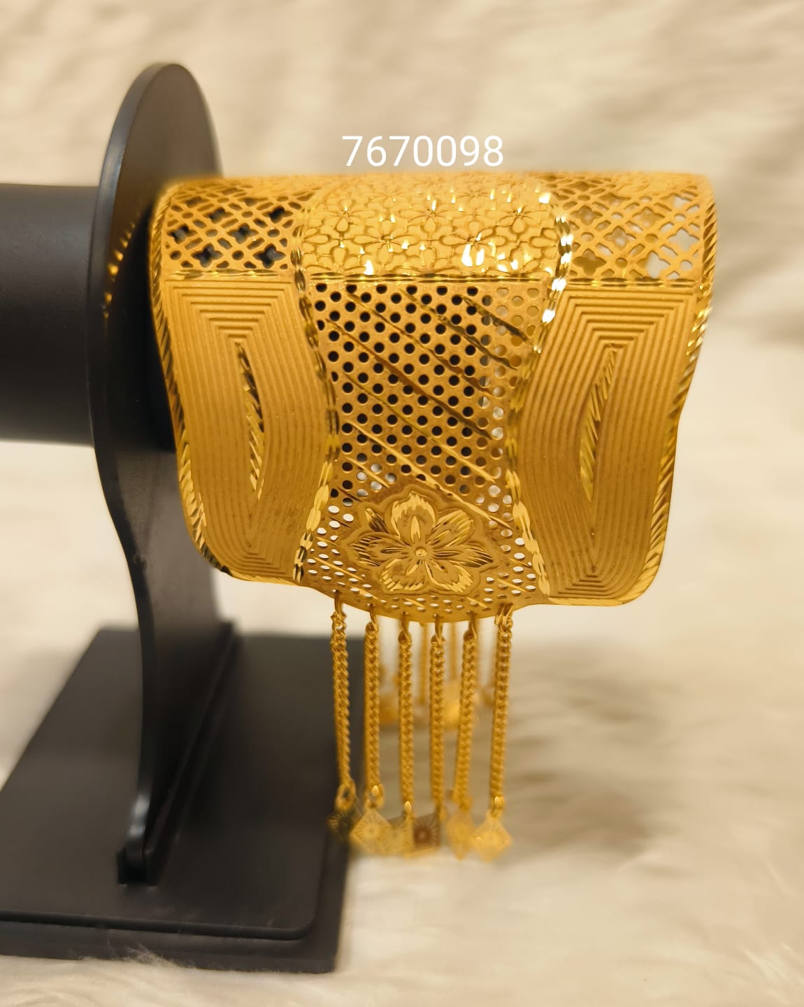Made with a copper base and finished with premium 2-gram gold plating, the bracelet delivers a luxurious shine with a lightweight feel. Its elegant design makes it perfect for stacking or wearing solo as a statement piece.