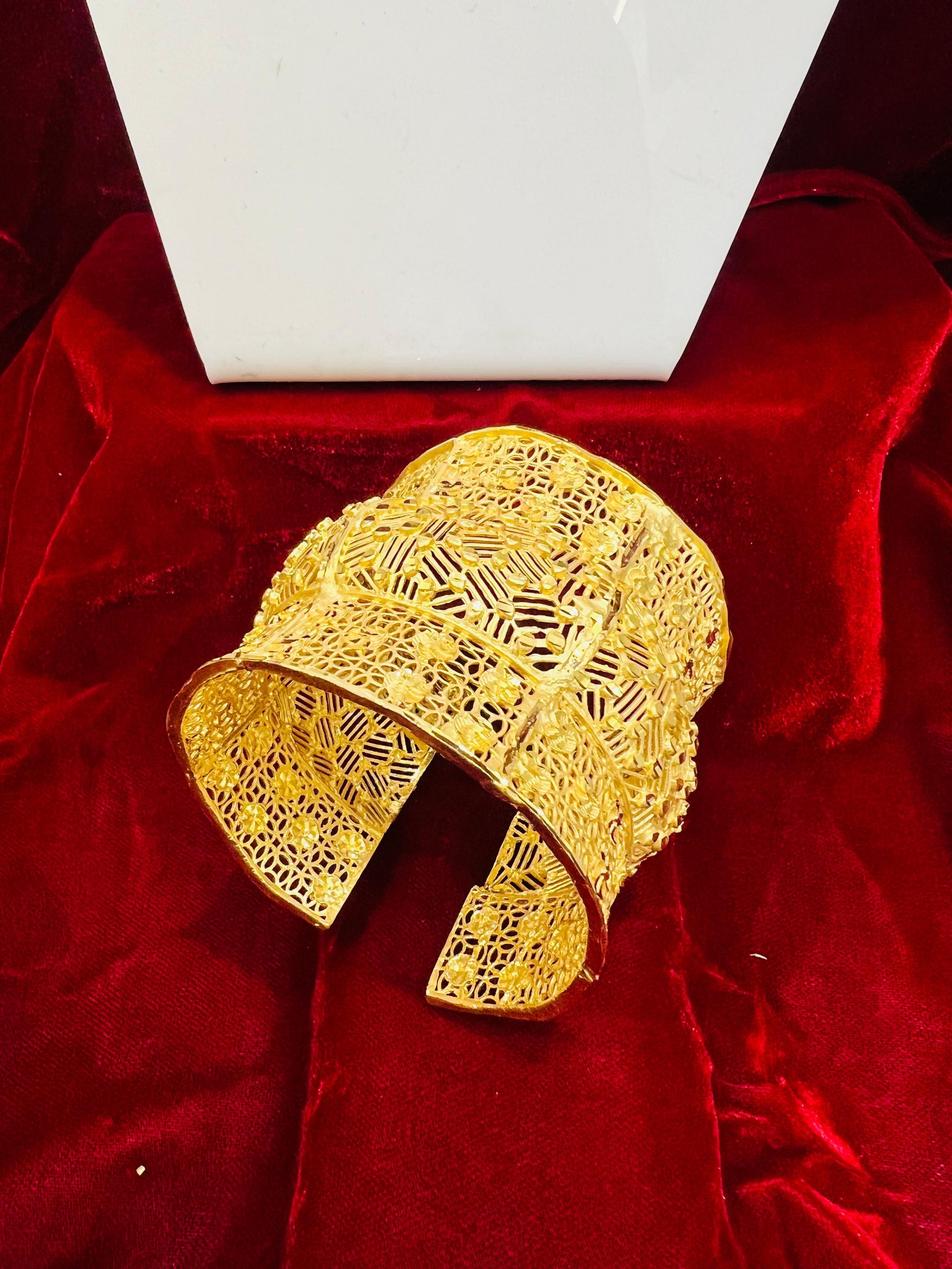 Made with a copper base and finished with premium 2-gram gold plating, the bracelet delivers a luxurious shine with a lightweight feel. Its elegant design makes it perfect for stacking or wearing solo as a statement piece.
