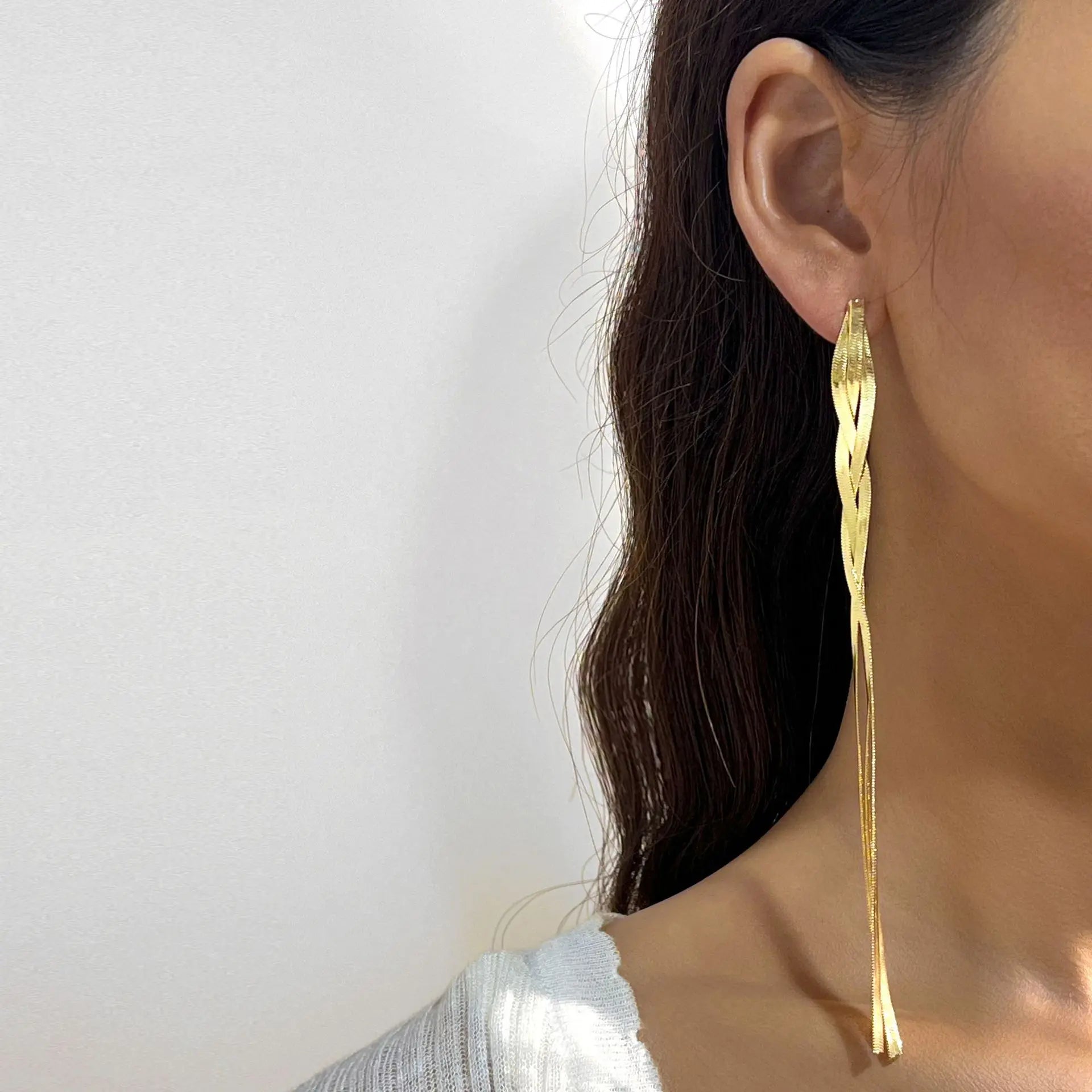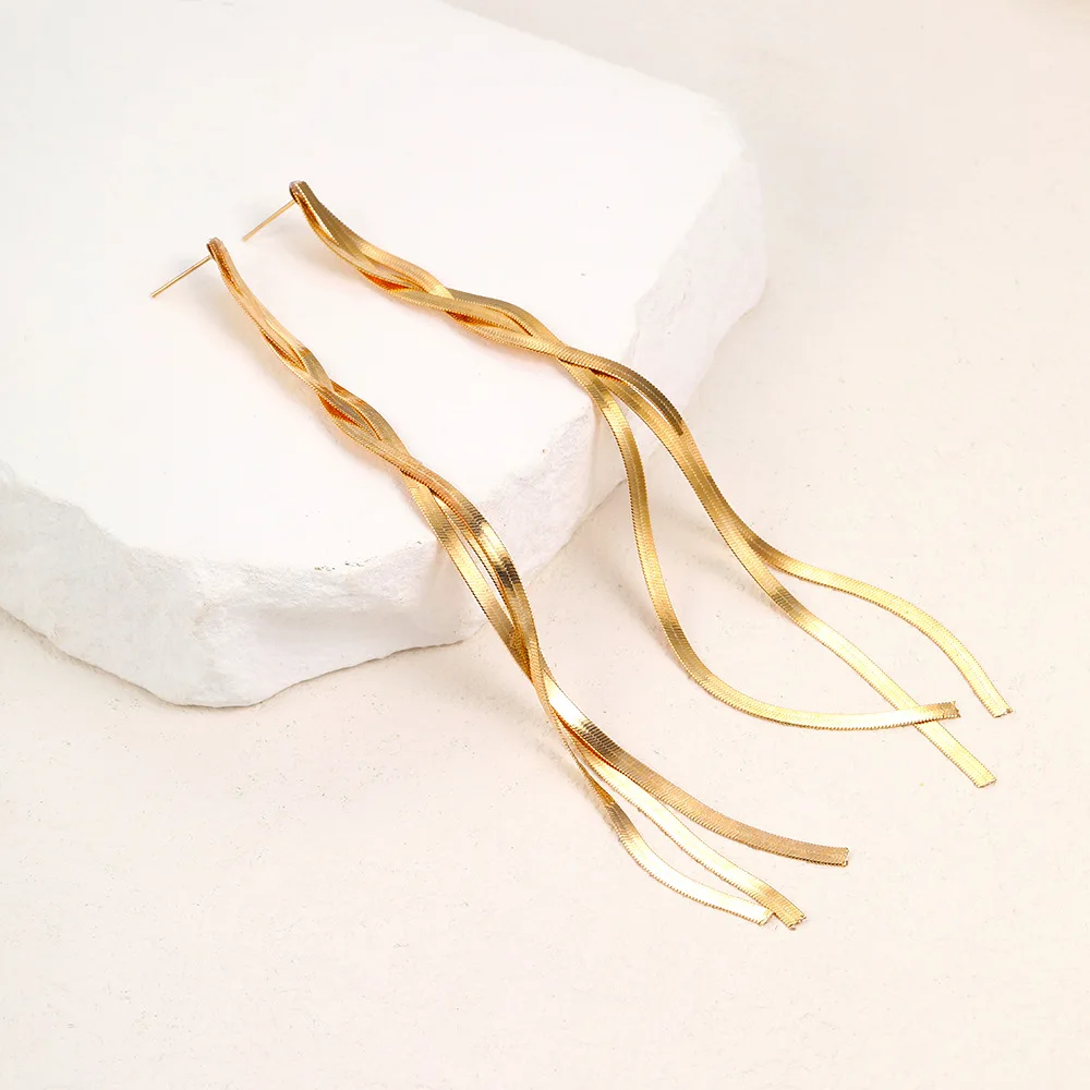 Gold Bling Tassel Statement Earrings – Elegant Long Drop Design for Women