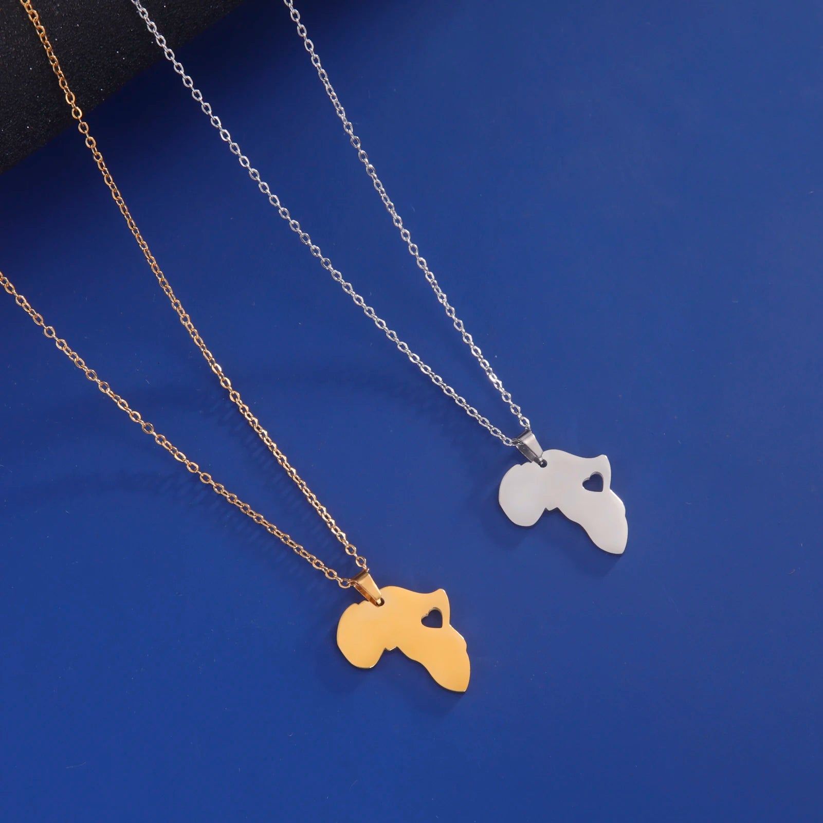 Trendy African Map Pendant Necklace for Women – Stainless Steel Geometric Motherland Necklace, Gold, Rose Gold, or Steel Color